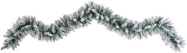Spotlight any bare area of your home in need of some color and holiday cheer with this flocked artificial garland. Flocked to recreate a snow setting, this faux garland is accented with 50 warm white LED lights. With a length of 9' add to any area in need of some holiday glow. Perfect for a bed frame, mantel or staircase.