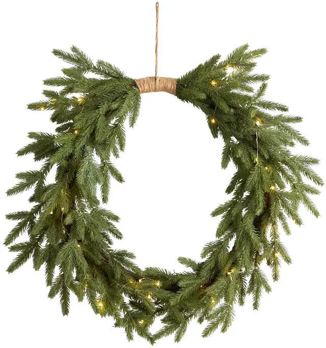 Light up your favorite seasonal accents while adding serious curb-side appeal with this artificial Christmas wreath intricately designed from realistic looking foliage in a palette of seasonal evergreens and accented throughout with Christmas lights to effortlessly illuminate either a wall or door, this 24' (in diameter) decorative wreath makes for an inviting accent and will undoubtedly transform any entrance all throughout the holiday season.