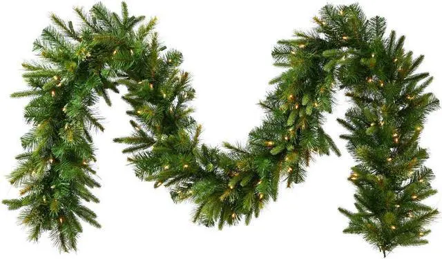 Vickerman 9' Cashmere Artificial Christmas Garland, 2 STRINGS of 50 Warm White Dura-lit LED Lights. Product Dimension : 14"W x 108"L x 14"H, Weight : 6 lbs