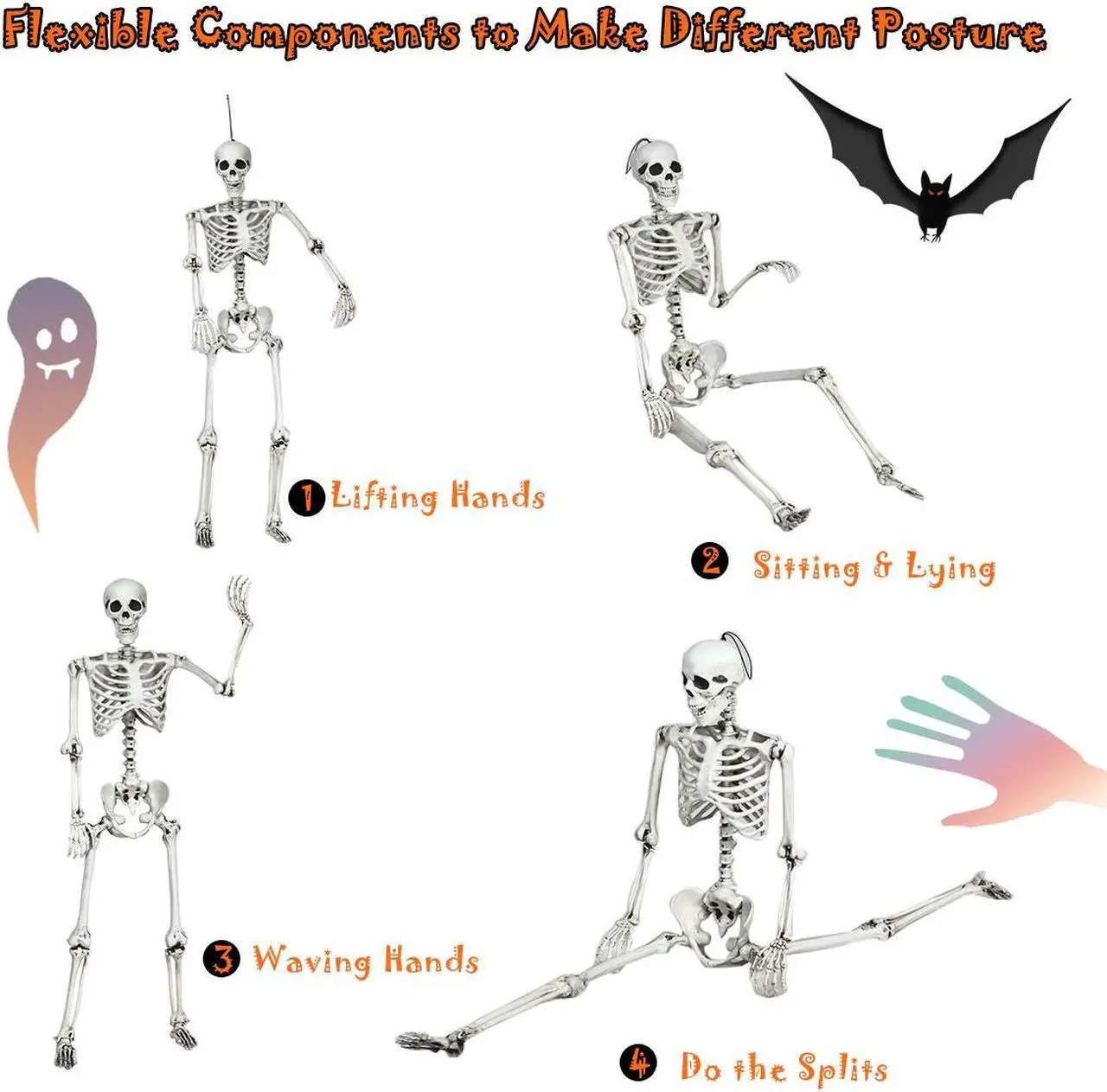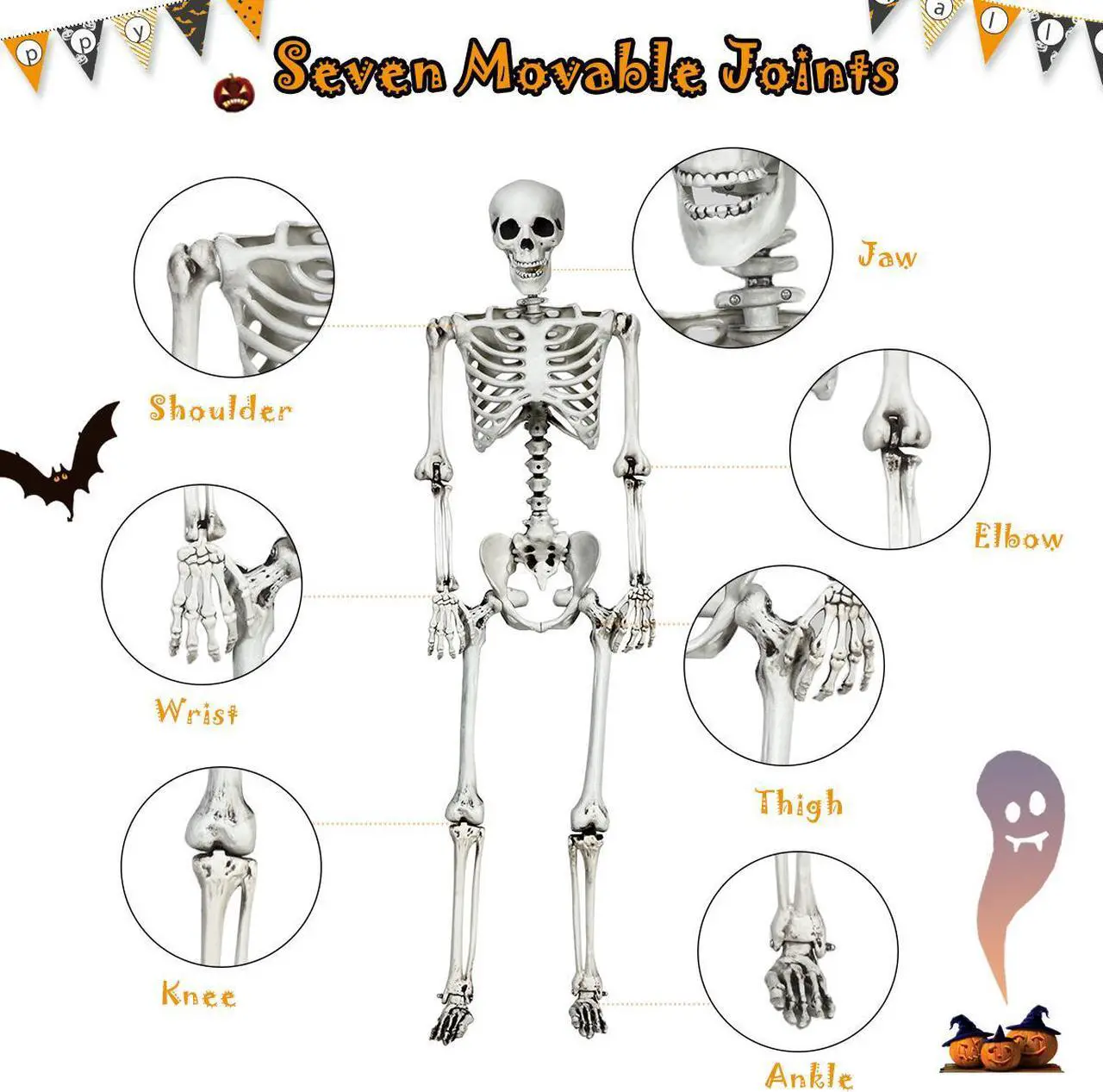 This amazing Halloween skeleton is sure to be the talk of the neighbors! This 63 inches high full size skeleton is perfect for decorating your Halloween party. It can greet guests at the door or join a party in the living room. It is made of sturdy PP material and can be used year after year. Hanging skeleton decoration adds a movable touch to your Halloween decoration. You can hang it in the dark corner around the house to frighten your friends. Seven flexible adjustable joints allow you to adjust the posture of the skeleton according to the needs of the scene. It is an ideal choice for Halloween parties, ghost houses and horror themes to create a horrible atmosphere.