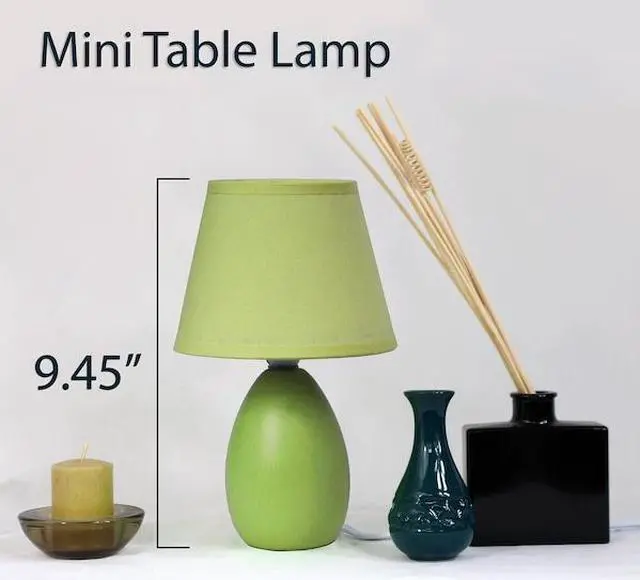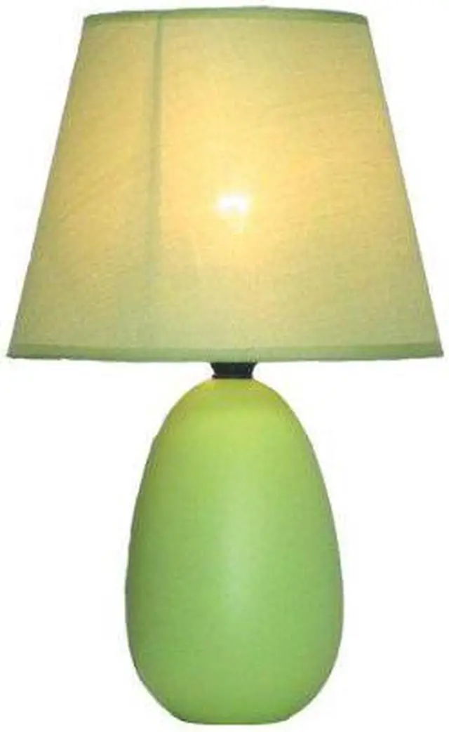 A lovely, inexpensive, and practical table lamp to meet your basic fashion lighting needs. This mini lamp features an oval shaped ceramic base and matching fabric shade. Perfect for living room, bedroom, office, kids room, or college dorm!