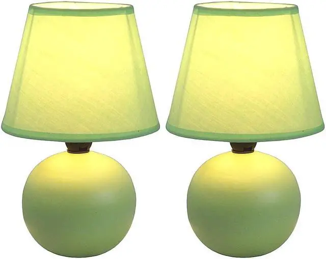 A lovely, inexpensive, and practical table lamp set to meet your basic fashion lighting needs. These mini globe lamps feature a ceramic base and matching fabric shade. Perfect for living room, bedroom, office, kids room, or college dorm!