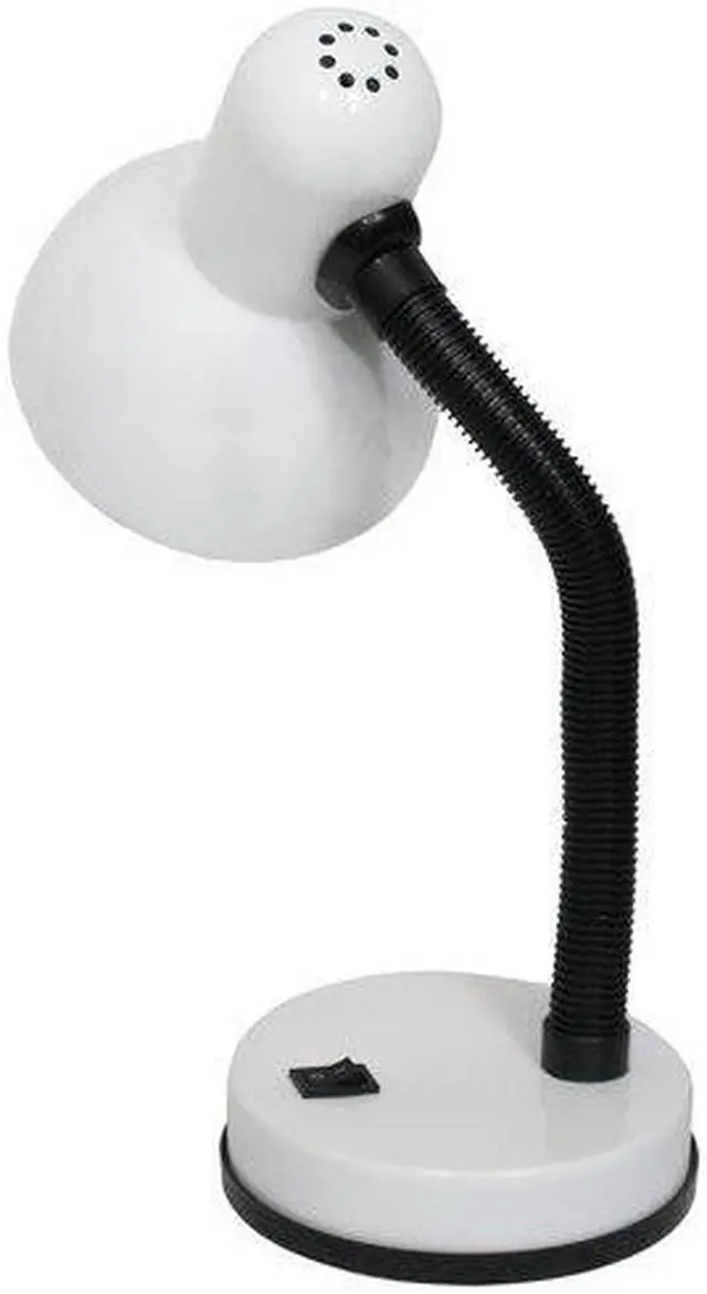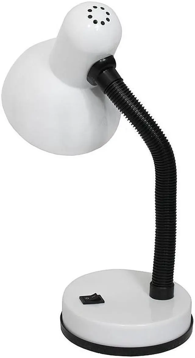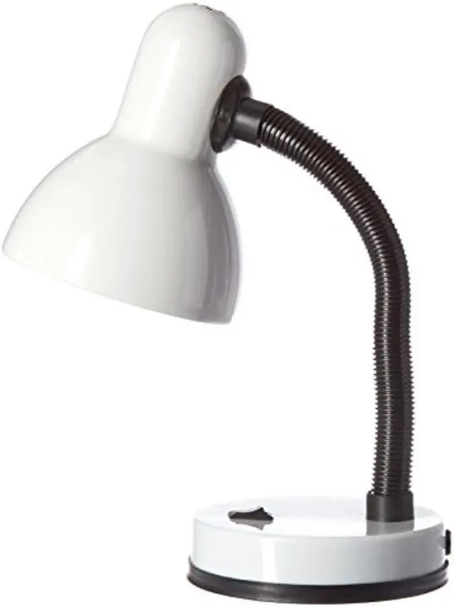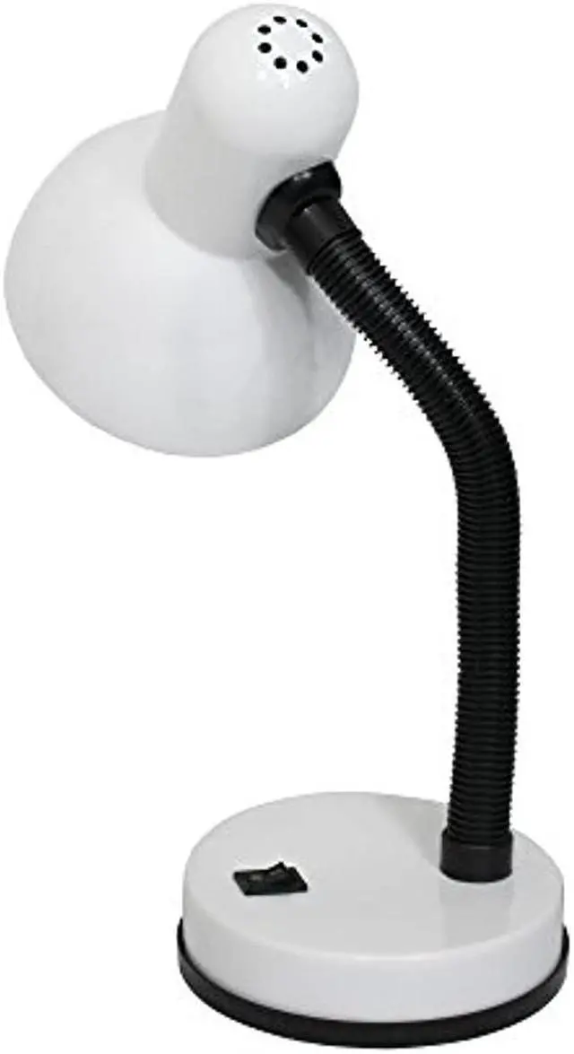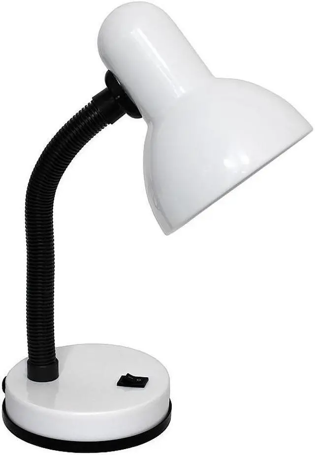 A nice, low-cost, and functional desk lamp to meet your basic lighting needs. This desk lamp features a painted metal base and shade, flexible hose neck, and ON/OFF switch located on the base for your convenience. Perfect for office, kids room, or college dorm!