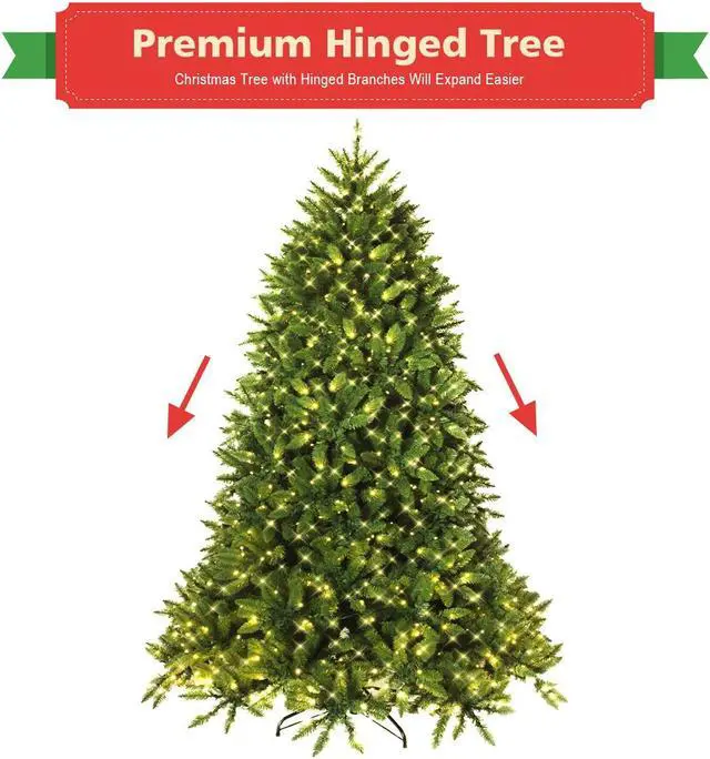 Our pre-lit Christmas tree offers a truly luxurious look and style. The 7.5ft artificial fir tree has 1968 branches and is full of appearance. PVC material is non-flammable, non-allergic and reliable to make it the perfect substitute for the real tree. We provide 700 LED lights with 8 flash modes to suit your holiday spirit. And 1968 branch tips provide plenty of space for hanging ornaments and other Christmas tree decorations. The hinged structure and foldable base allow you to easily assemble the tree or unpack it and effortlessly store it next year. It is ideal for decorating homes, offices, school, etc.