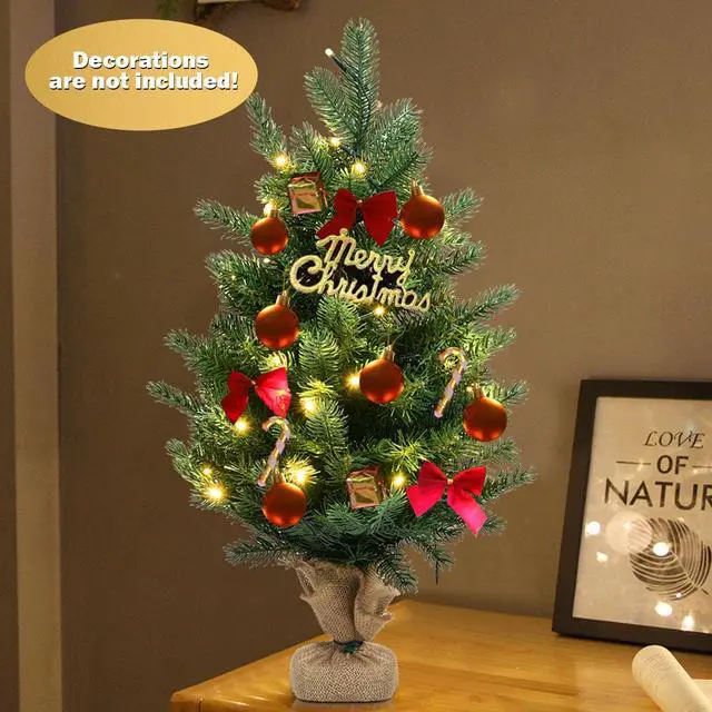 Our 24-inch mini Christmas tree is the perfect choice for Christmas. Made of faded and pressure-resistant PVC and PE needles, the tree looks very real and lush. The sturdy cement base keeps the trees upright and the base is covered with linen, which not only adds aesthetics to the tree but also protects the table from scratches. The pre-lit 35 LED lights provide a warm white lighting effect, adding a dreamy holiday atmosphere to your home. You can decorate the tree with some lightweight accessories. The LED light is powered by battery and has a timing function that gives you great convenience.