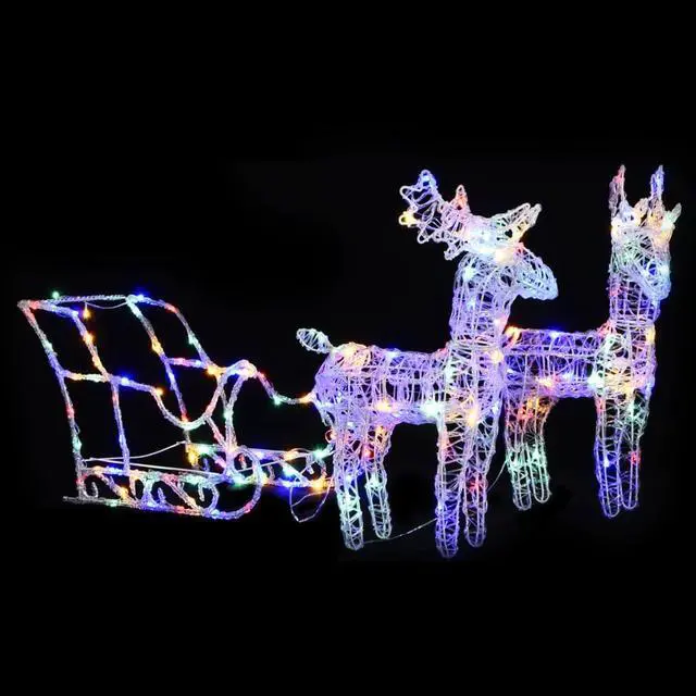 Create a beautiful display in your yard this holiday season with this adorable glowing 2 reindeers and sleigh Christmas decoration.