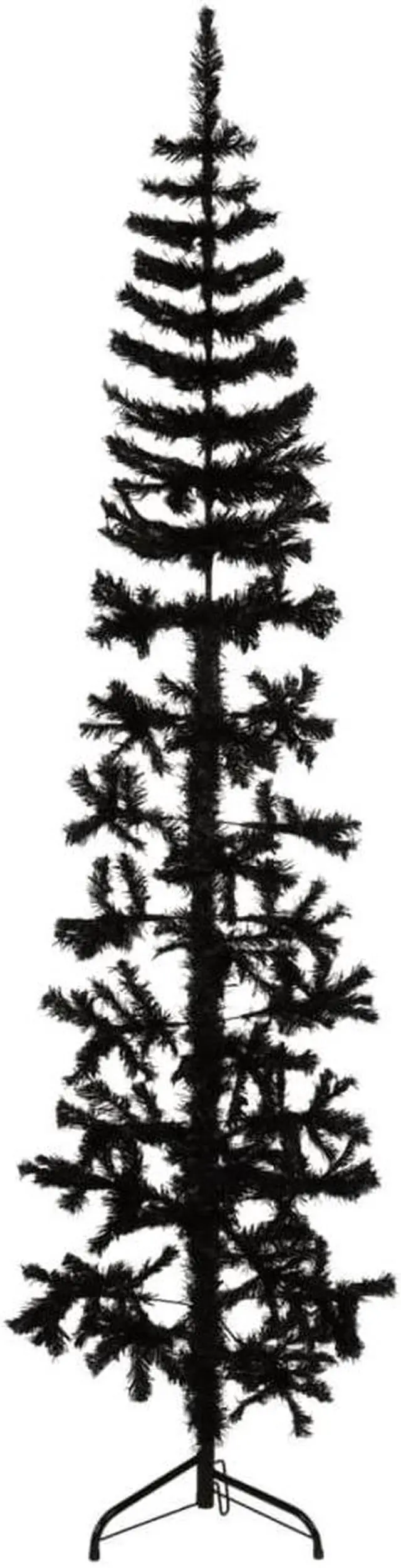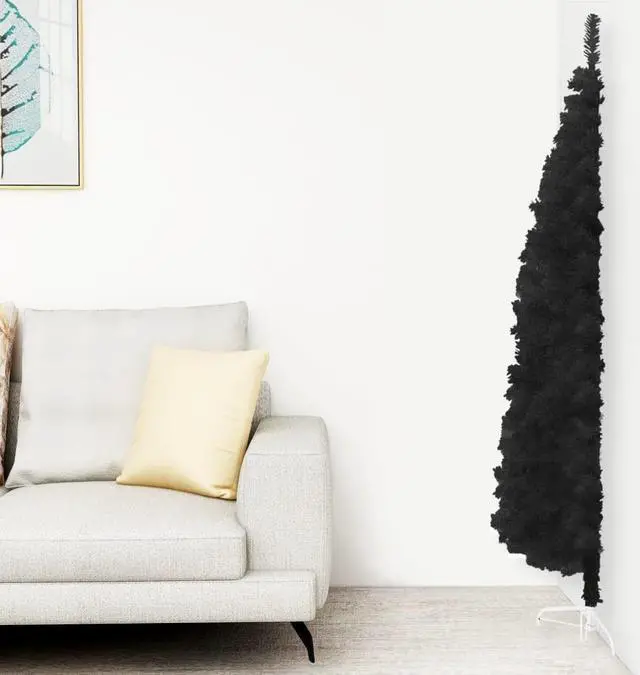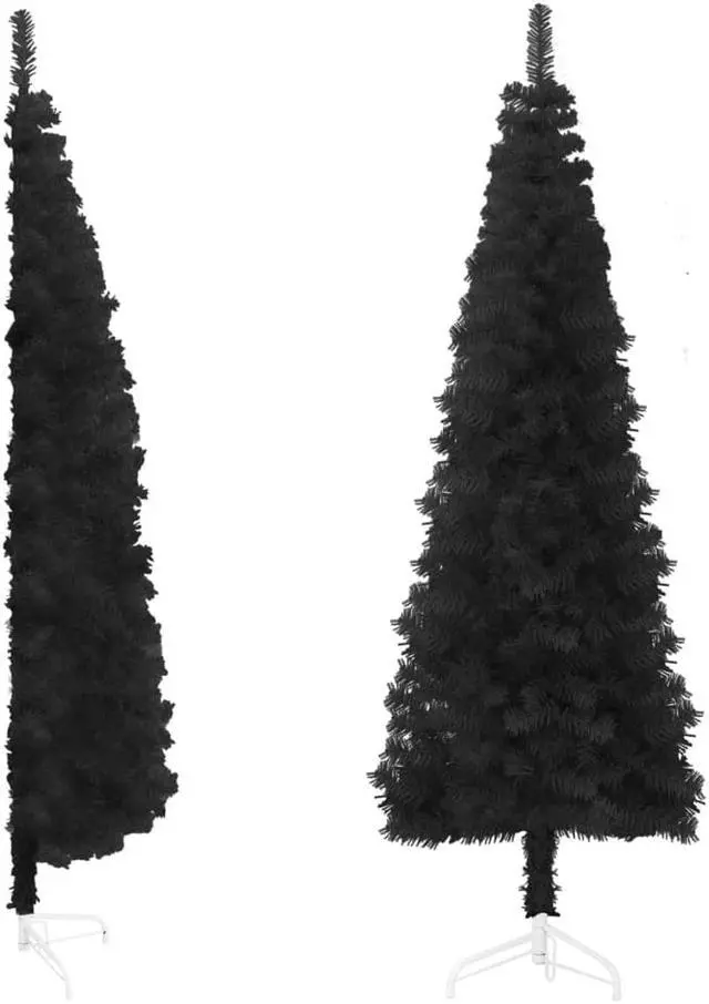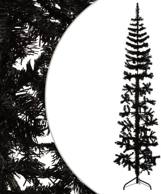 Durable & lifelike design: This slim artificial half Christmas tree, made from high-quality PVC with a sturdy steel stand, ensures lasting durability and a realistic look, even with heavy ornaments.