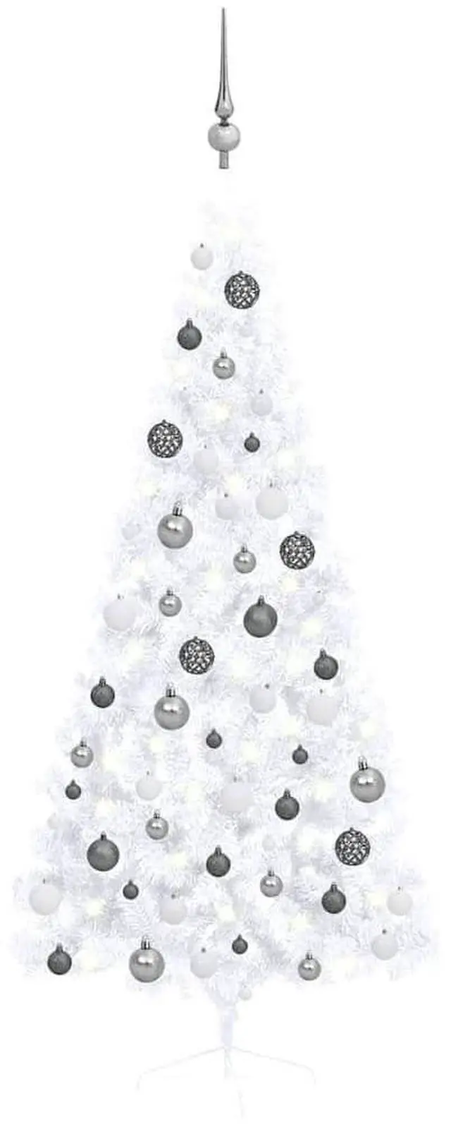 This artificial half Christmas tree forms the striking centerpiece of your Christmas decorations, creating a unique Christmas atmosphere! This beautiful Christmas tree, made of PVC material, is very lifelike in its shape and appearance. The steel feet add to its stability. this artificial tree can be placed against the wall to save more space. The Christmas tree can also be used again every year, making it a very economical choice compared to a real tree. Featuring energy-efficient LED lights, it lights up beautifully and creates a cozy holiday atmosphere.