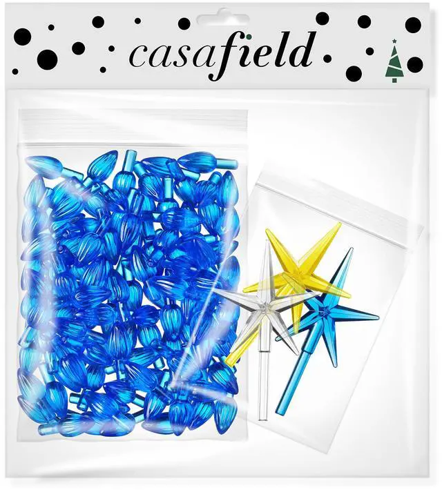 Our kit contains 108 pieces of dark blue medium twist replacement bulbs and 3 star toppers, enough to fully refresh an entire 15 ceramic holiday tree. The star toppers come in dark blue, gold and clear, coordinating beautifully with the replacement bulbs allowing for three different holiday looks.