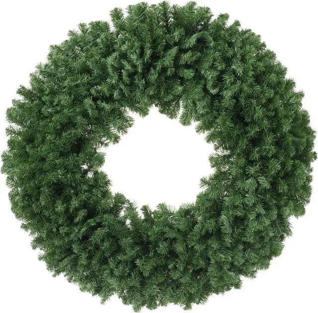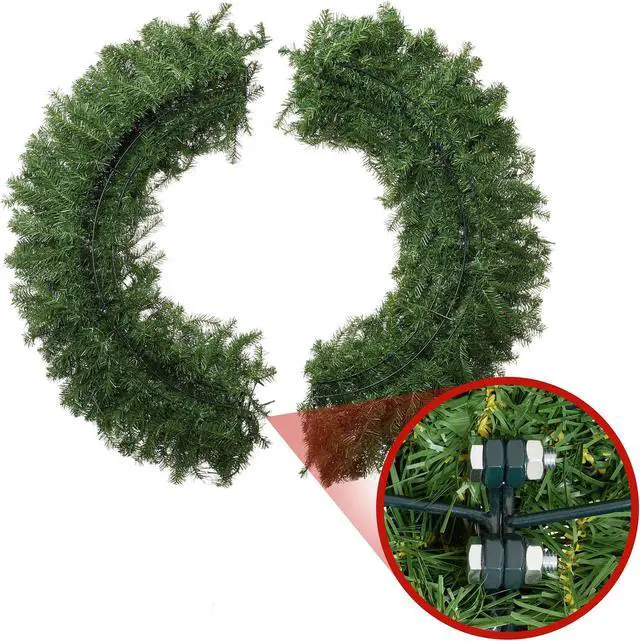 The branches and needles are both flame retardant and non-allergenic. This lush and full Christmas wreath sets up easily. For its most lush and full form, please set aside 15 minutes to properly shape the wreath. Simply pull down and arrange the branches to your preference with the included protective gloves. 48" Diameter. 860 Tips.