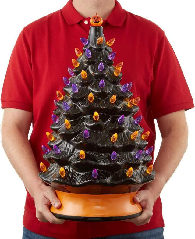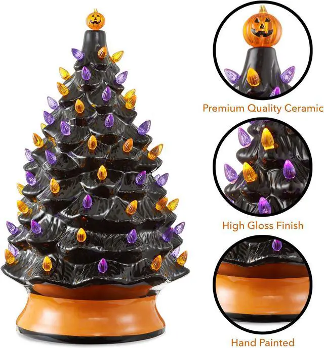 The Casafield ceramic Christmas tree comes with two complete sets of bulbs and toppers giving you two options to decorate as you choose. You can personalize the look of your tree easily, as each bulb sits in a replaceable plastic fitting that keeps it in place. Bulb fittings are provided in two sizes to accommodate slight variations in the hole size. Beautifully hand-painted and crafted from glazed ceramic, this tree features a smooth, high-gloss finish to complement all your best seasonal decorations. The 8 Ft. power cord will keep your tree brightly lit with no need to worry about replacing batteries.