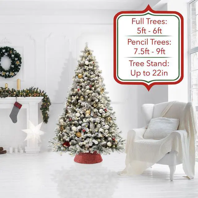 The collar comes in versatile sizing offering ease in placement and removal, and it's recommended to measure your tree stand before selecting the appropriate size. Assembly requires no hardware, just connect via alternating hooks and eye closures for a sturdy build. Its elegant design and easy disassembly contribute to its convenience, ensuring it remains a perfect choice for seasons to come. Please note, due to the handmade nature of these products, each piece is unique and slight variations in color and measurements may occur.