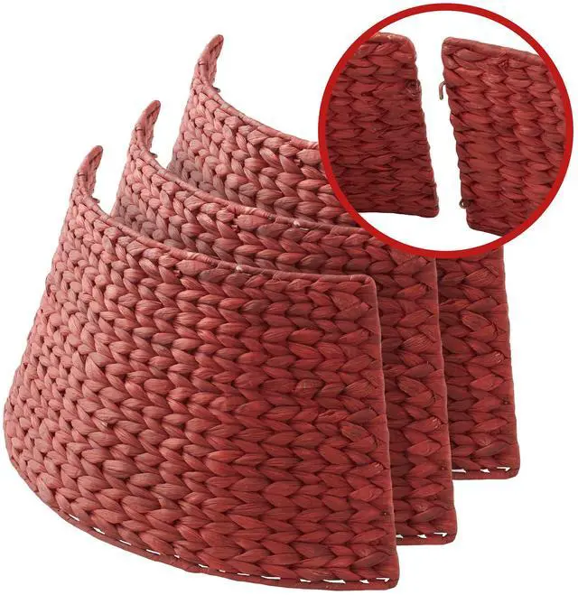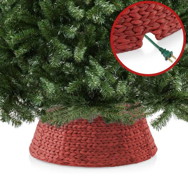 Enhance your holiday decor with Casafield's Christmas tree collar, adding a rustic elegance to your festive display. The collar, featuring a braided pattern and tapered design, is woven from sustainable, natural water hyacinth, ensuring both durability and environmental friendliness. Supported by a sturdy metal frame, these collars are designed to last. This stylish alternative to traditional tree skirts covers both the tree stand and lower trunk, safeguarding young children and pets from the base of the tree. A prefabricated opening allows for tidy cord management, keeping your holiday display looking pristine.