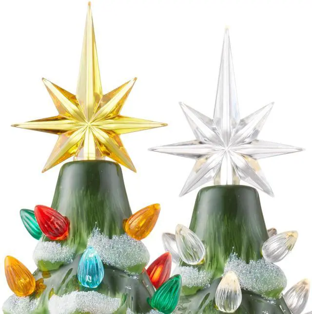The Casafield 12-inch ceramic Christmas tree comes with two complete sets of bulbs giving you two options to decorate as you choose. You can personalize the look of your tree easily, as each bulb sits in a replaceable plastic fitting that keeps it in place.