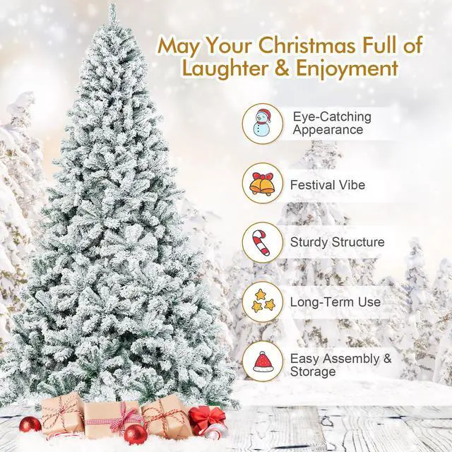 SlickBlue 9 Feet Artificial Christmas Tree with Premium Snow Flocked Hinged