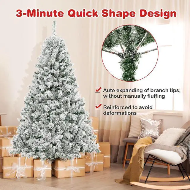 Durable Lush Tree: With a snowy flocked design, the 6 ft Christmas tree echoes the winter season, while boasting branch tips to display impressive vibrancy. Besides, it is made of 100% new PVC that resists fire, fading and won't cause any allergies.