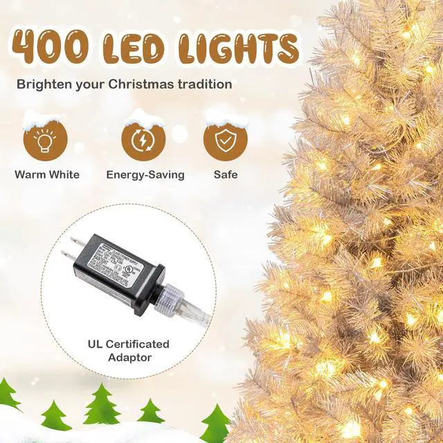 Charming and Vivid Appearance: This artificial Christmas tree boasts lush branch tips, exuding a full and lifelike appearance. Furthermore, it is crafted from unique silver tinsel leaves that elegantly reflect colorful lights, creating a mesmerizing shimmering effect.