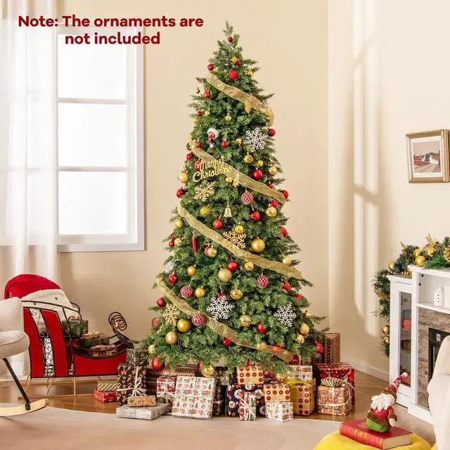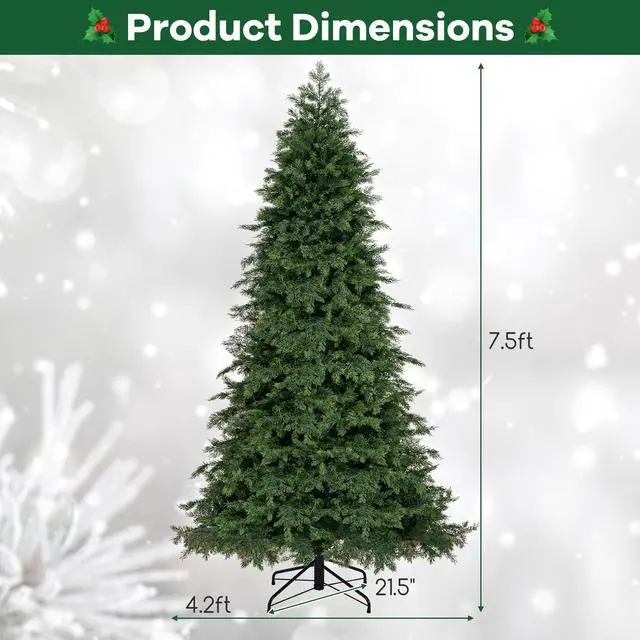 Stunning Appearance: This 7.5 ft artificial Christmas tree is adorned with 721/1019 lush branch tips, creating a luxurious and natural appearance. Moreover, there are 2 types of leaves, verdant PVC leaves and soft PE leaves with different shades of green, adding depth and realism.