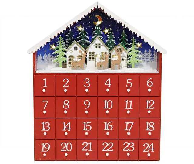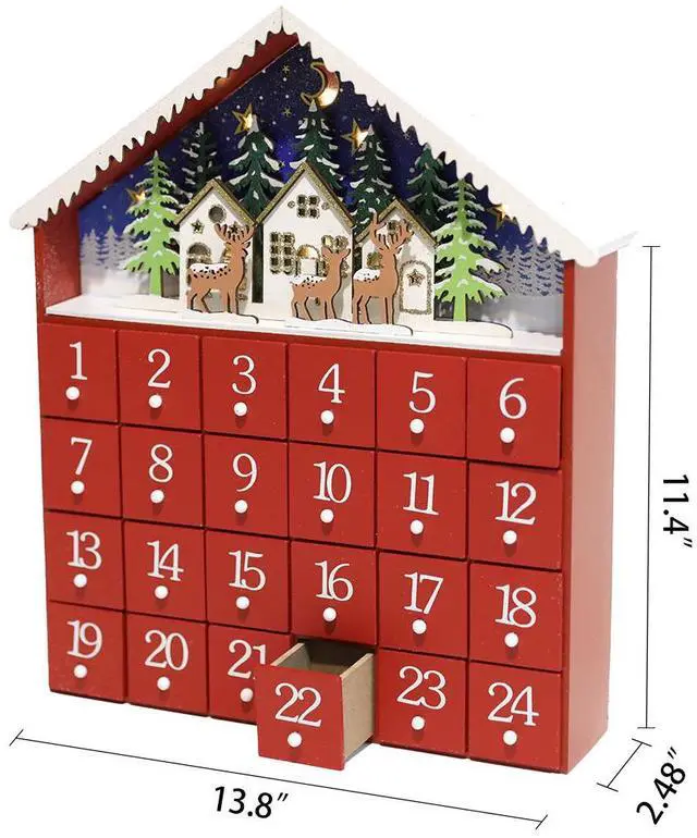 This fantastic advent calendar is house shape with LED. When the lights turn on, warm lights illuminate the shade. Each drawer can be filled with candy, or a small gift, or a clue of bigger gift so that a child can find them out with fun. From 1st of December to the 24th, a child with good behavior will be awarded by parents or grandparents. When a child opens the drawer, it would be a great pleasure to find awards. The memory of countdown of Christmas during childhood, will be a tradition that a person treasures for a life.