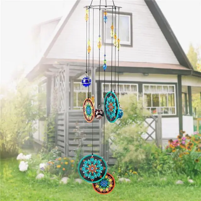 Wind Chimes Outdoor with Melody Deep Tone,Chakra Crystal Glass Beads Decorated Window Garden Hanging Decorative Mobile Ornament