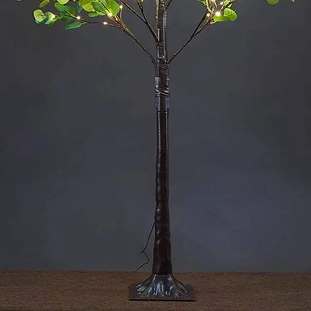 5FT LED Leaf Garland Tree Lights - Outdoor Beautifully crafted green garland tree lights with brown branches and lush green leaves. Perfect for adding a festive touch to your outdoor décor.