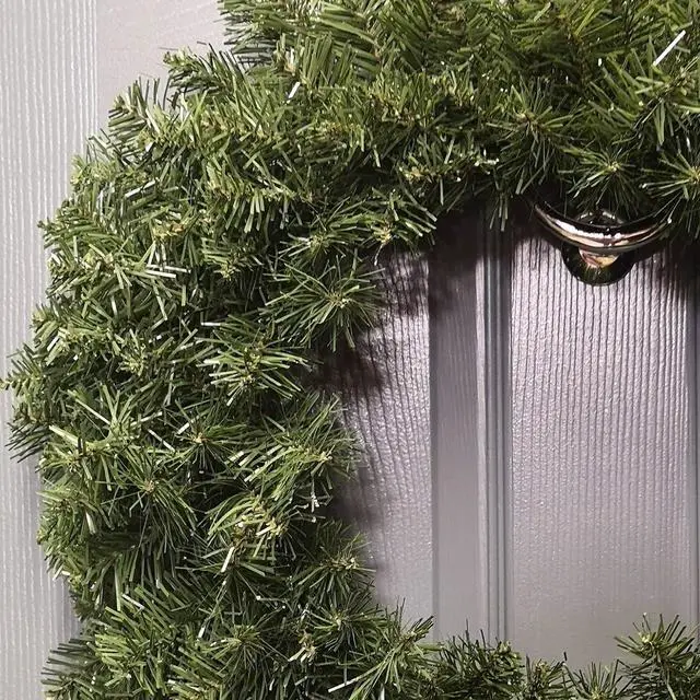 Bring classic elegance to your home décor with the 24" Tapered Salem Pine Wreath. Crafted with 120 realistic pine tips, this wreath offers a full, lush appearance perfect for any season. Ideal for doors, walls, or table displays, it adds a natural touch without the maintenance of real greenery.