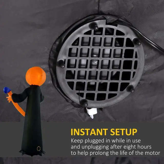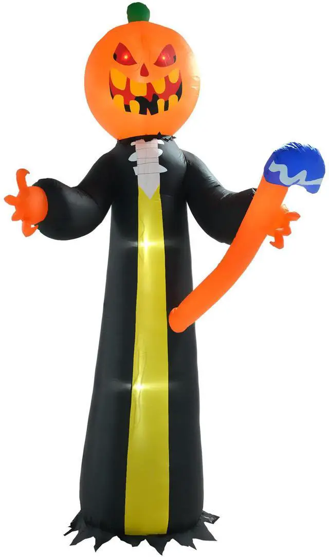• 10ft Inflatable Halloween Pumpkin Head Ghost with Hammer, Blow Up Halloween Decoration Outdoor LED Yard Display, Waterproof