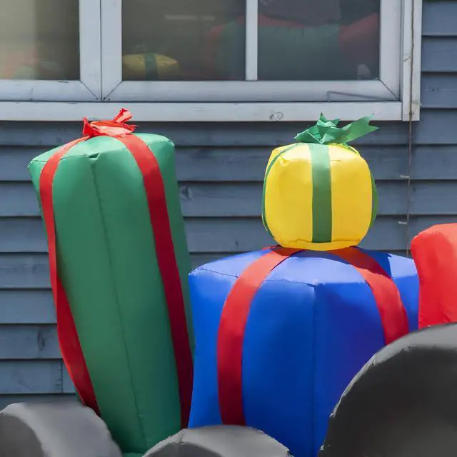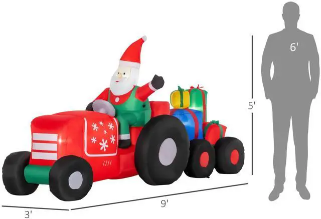 9ft Christmas Inflatables Outdoor Decorations Santa Claus Driving Trailer with Colorful Gift Boxes, Blow-Up LED Yard Christmas Decor for Lawn Garden Party