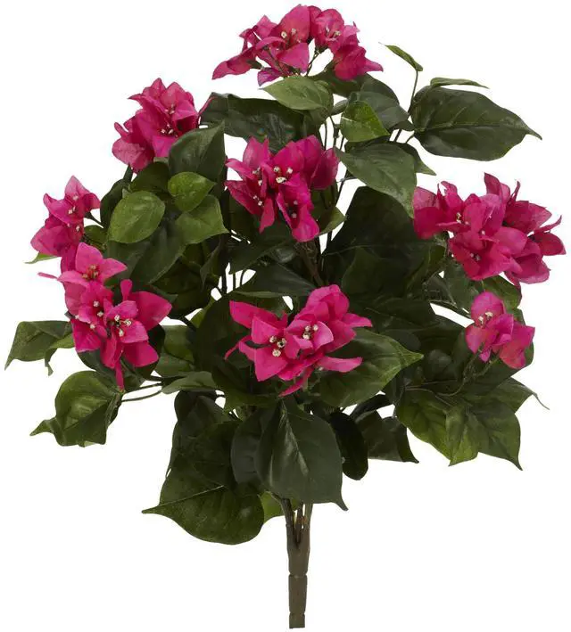 With multiple gatherings of pink blooms exploding out of the realistic looking foliage, this artificial bougainvillea plant has the allure of a bush, but the convenience of being 20 inches tall. Place this set of three together, or put them each in their own vase with a few of your favorite faux white flowers and position them around your bedroom for a coordinated burst of color.