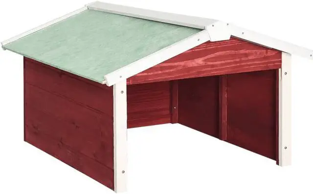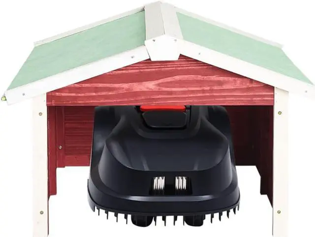 • With this wooden lawn mower garage, you can protect your hard-working helper in the garden. This robotic lawn mower house, made of solid firwood, is durable and suitable for outdoor use. It effectively protects your lawn mower and its charging station from rain, snow and harmful UV radiation. Thus, the garage extends the service life of the lawn mower and its accessories. The rustic and plain design fits visually in most gardens. This lawn mower cover is quick to assemble and easy to move, as no pins or other fasteners are needed.