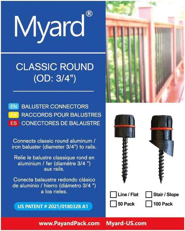 100 connectors for installing 50 round balusters (diameter 3/4"). Engineering nylon + fiberglass + Anti-UV materials used for advanced weather resistance.