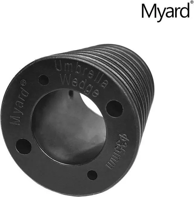 Installation: 1. Draw out the umbrella and pole from the hole on the patio table. 2. Install the Myard Cone Wedge Shim onto the umbrella pole. 3. Insert the umbrella and pole back to the hole on the patio table. 4. Spin and push the Cone Wedge Shim downard gently in order to have it sinked into the hole compactly. (lube / oil / vaseline might help in doing this) 5. DONE