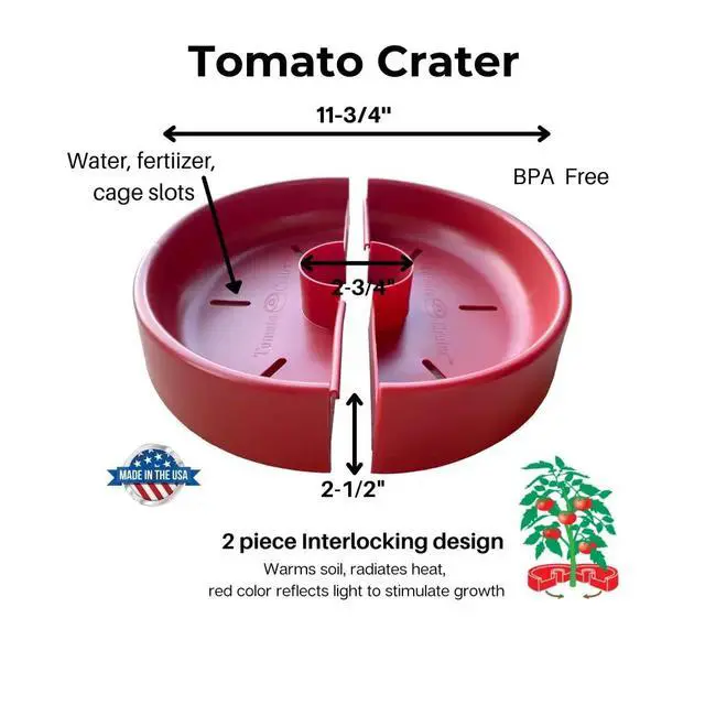 Tomato Crater was designed around one simple idea: when water flows through a strong foundation, plants thrive. This snap-together, two-piece root-zone watering ring installs around the base of tomato and vegetable plants to guide water where it matters most ? below the surface, at the roots. By reducing surface watering, Tomato Crater helps create a healthier growing environment that naturally limits weeds and discourages pests without chemicals. Reusable, water-efficient, and Made in the USA, Tomato Crater supports better gardening habits, stronger plants, and more confident gardeners ? season after season.