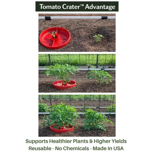 Tomato Crater was designed around one simple idea: when water flows through a strong foundation, plants thrive. This snap-together, two-piece root-zone watering ring installs around the base of tomato and vegetable plants to guide water where it matters most ? below the surface, at the roots. By reducing surface watering, Tomato Crater helps create a healthier growing environment that naturally limits weeds and discourages pests without chemicals. Reusable, water-efficient, and Made in the USA, Tomato Crater supports better gardening habits, stronger plants, and more confident gardeners ? season after season.