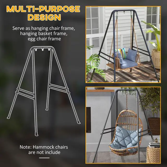 Outdoor Swing Chair Stand: Crafted from heavy-duty steel pipes with a 1.5" diameter and water-safe powder coat, our swing chair stand offers the materials needed to endure weather without issue. Swing