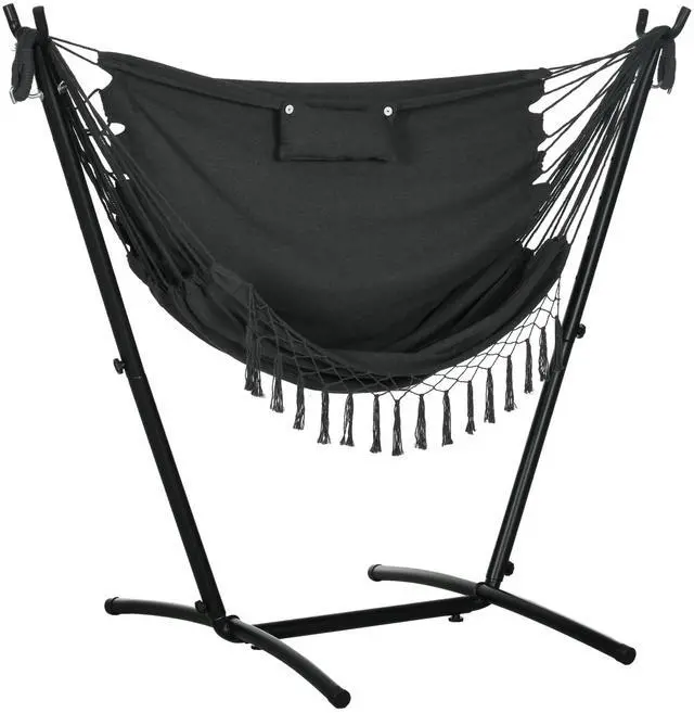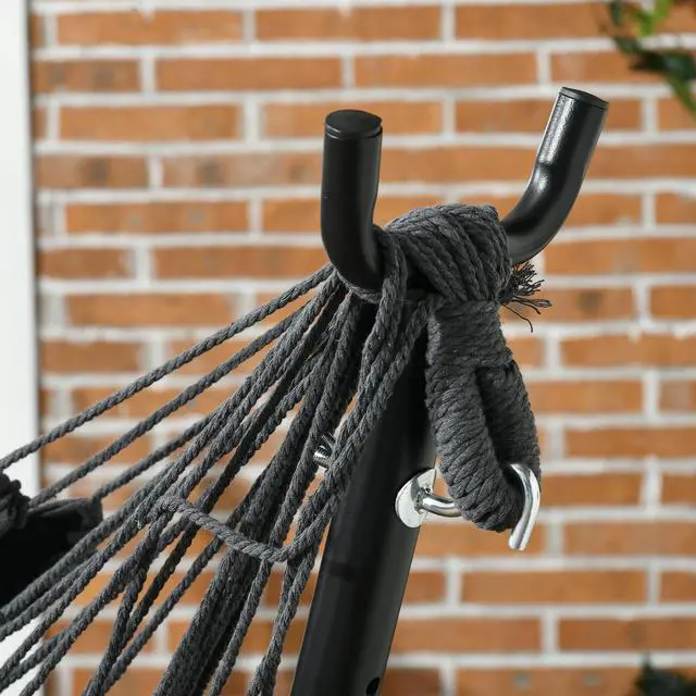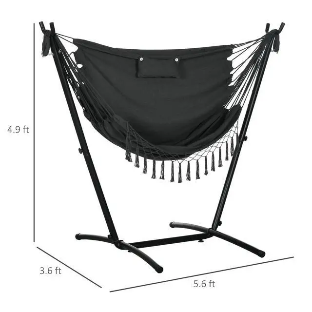 • Patio Hammock Chair with Stand, Outdoor Hammock Swing Hanging Lounge Chair with Side Pocket and Headrest, Dark Gray