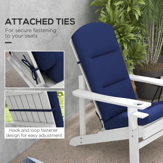 Tie-on Seat Cushions: Our set of lawn furniture cushions can fasten to the seat of your Adirondack to avoid slipping or flying away with the wind. Make use of the single touch straps, and you can fit them to seats 19.75" - 20.75" in width. Seat & Back Adirondack Chair Cushions, Patio