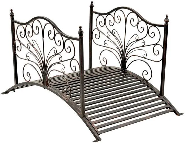 Fancy Side Rails: There are two side rails with a decorative scrollwork design on this garden bridge, adding elegance to your existing outdoor decor.