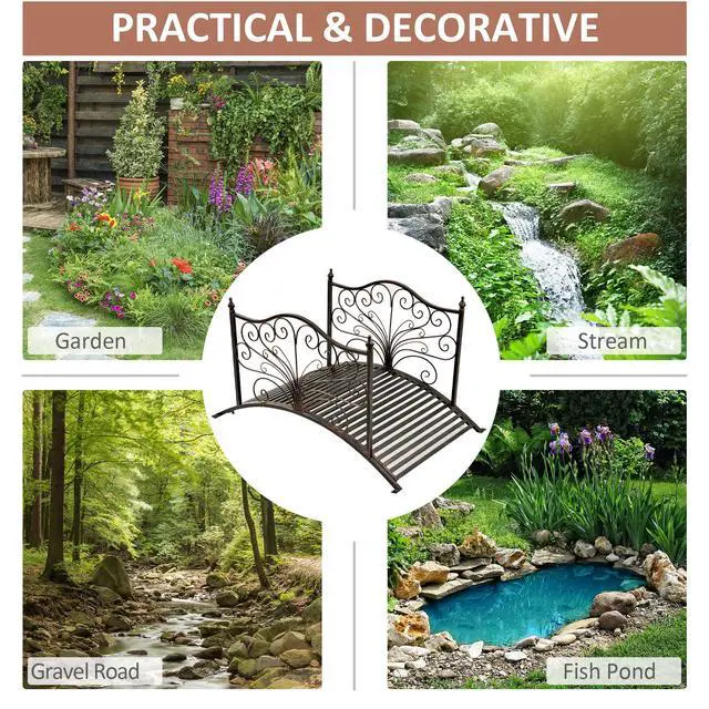 Decorative Look: This metal garden bridge is designed to fit in any setting and adds beauty and style with great functionality to any backyard, trail, or entranceway.