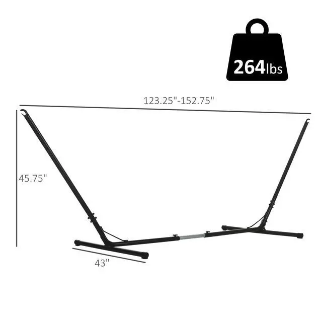 FULLY ADJUSTABLE: The hammock stand is adjustable from 120" to 150" in length, so it can accomodate any size of hammock. Max Hammock