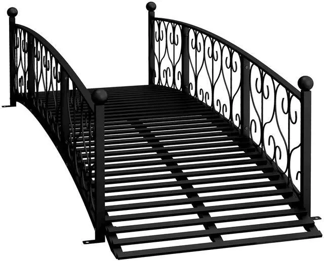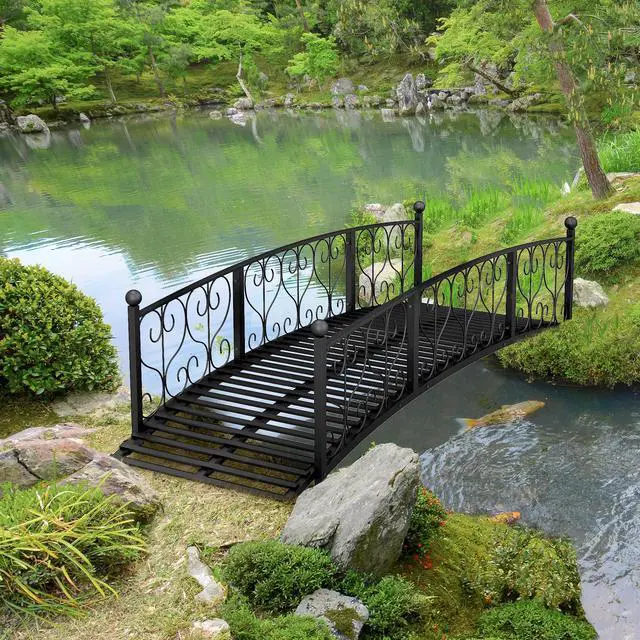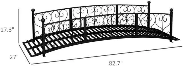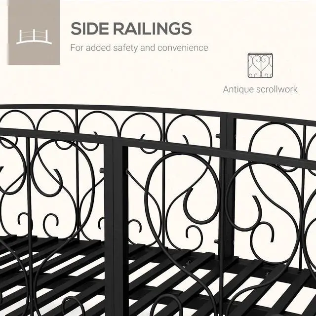 Metal Garden Bridge: This backyard bridge can be placed over a small stream, creek, fish pond, or walkway in your garden for functional outdoor decor. Antique Style: It's an elegantly arched yard bridge that pulls together the landscape of your garden, featuring a frame with scrollwork "S" motifs. It instantly adds antique renaissance charm to any walkway. Safe Handrails: The stylized handrails aren't just for looks