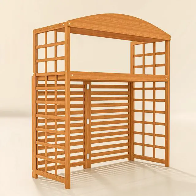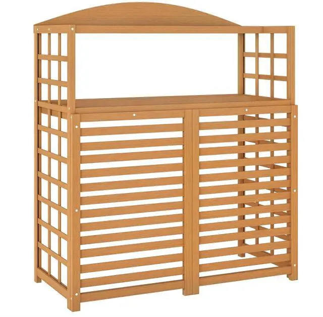 Dual-Purpose Design: This AC unit fence provides an esthetic way to hide your AC system while also providing a place to do some light gardening. Two open shelves and grid sides provide plenty of space for setting or hanging plants or garden accessories Solid, Natural