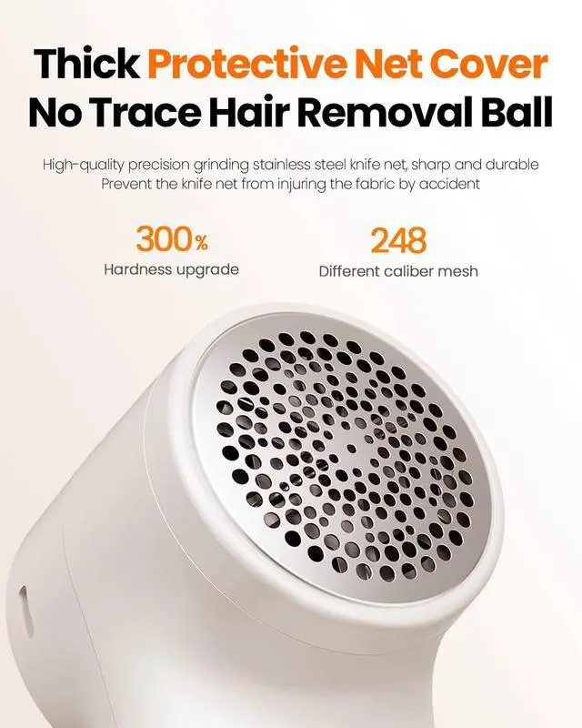 Triple Protection: Fabric Protection, Bionic honeycomb mesh protects any fabric from damage; Safety protection, When the lid is loose, the lint remover will be turned off; Charge Protection, stop charging when fully charged