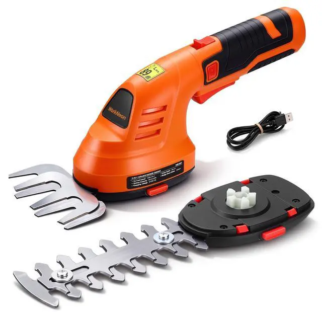 Rechargeable: Long-life, 2000mAh lithium-ion battery for hassle-free, cordless operation (USB cable included). The grass trimmer can be operated for approximately 45-60 minutes with a full charge. This cordless grass shear will take approx 2.5-3.5 hours for the full charge