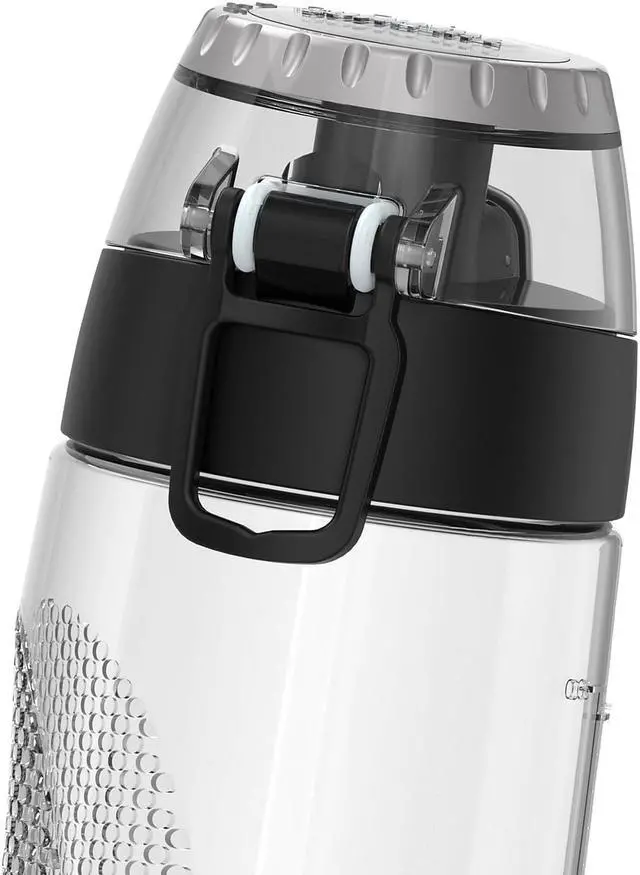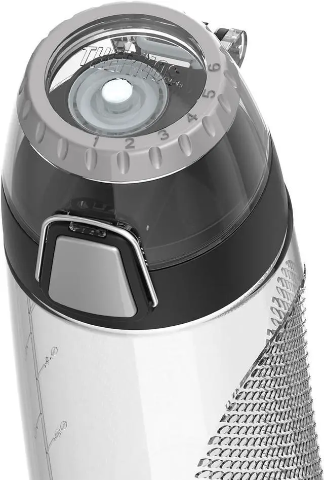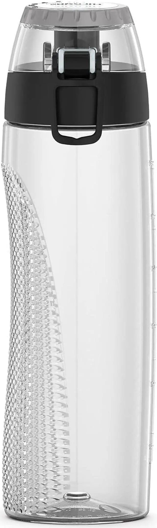 The new 24-Oz. Plastic Hydration Bottle with Meter by Thermos gives you the flexibility to choose what matters most. Nothing is more vital to staying healthy and fit than proper hydration, and this hydration bottle make it easy. It's made of BPA-free materials that are reusable and built to last. Incorporated into the lid is a rotating intake meter to monitor your daily water consumption. With an ergonomic design that is comfortable to grip and a flip up carrying loop, this Clear hydration bottle is great for long walks, workouts, the ride to work, or wherever life takes you.