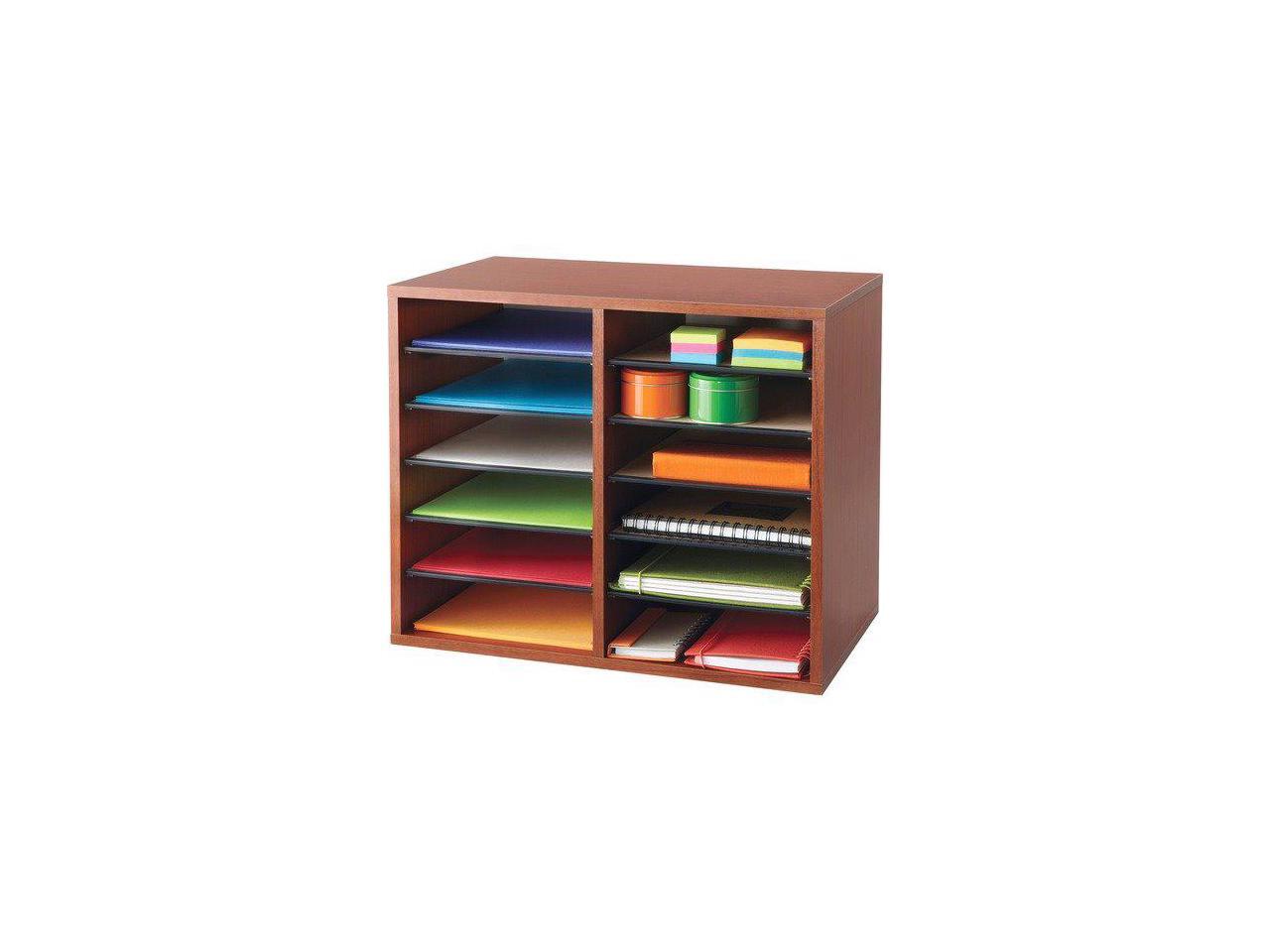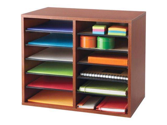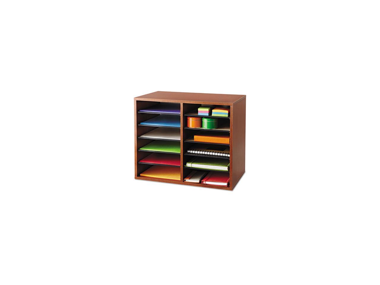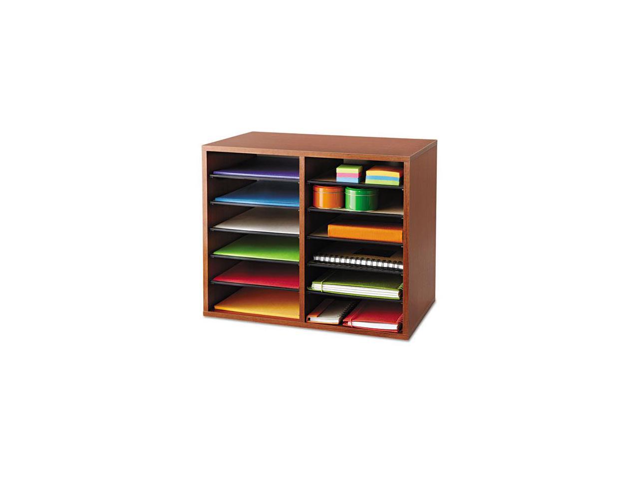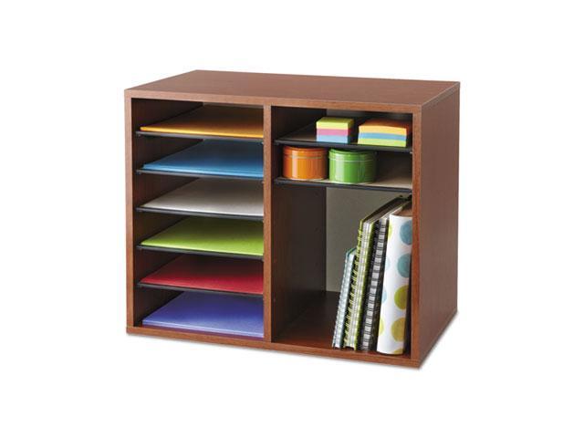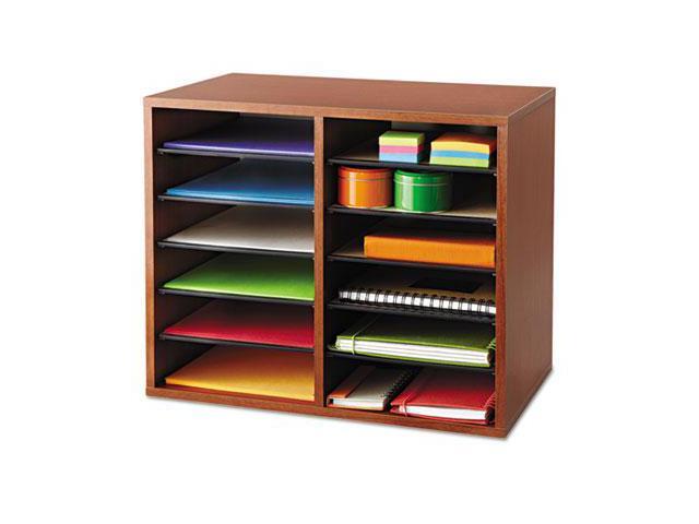 Wood Adjustable Literature Organizer - 12 Compartment in Cherry by Safco