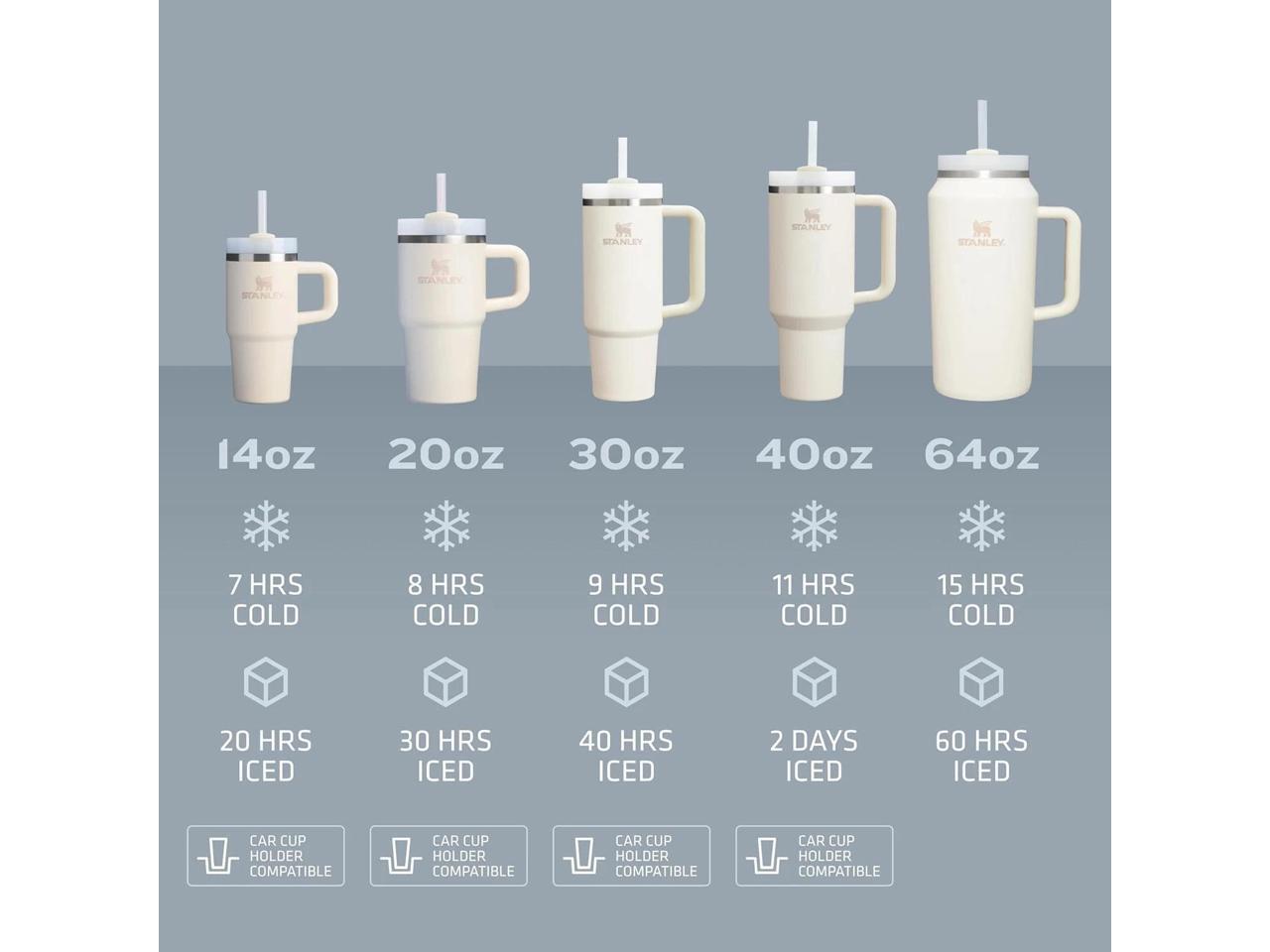 - YOUR DREAM TUMBLER: Whichever way your day flows, the H2.0 FlowState tumbler keeps you refreshed with fewer refills. Double wall vacuum insulation means drinks stay cold, iced or hot for hours. Choose between our 14oz, 20oz, 30oz,40oz and 64oz options depending on your hydration needs. The narrow base on all sizes (except 64oz) fits just about any car cup holder, keeping it right by your side.
