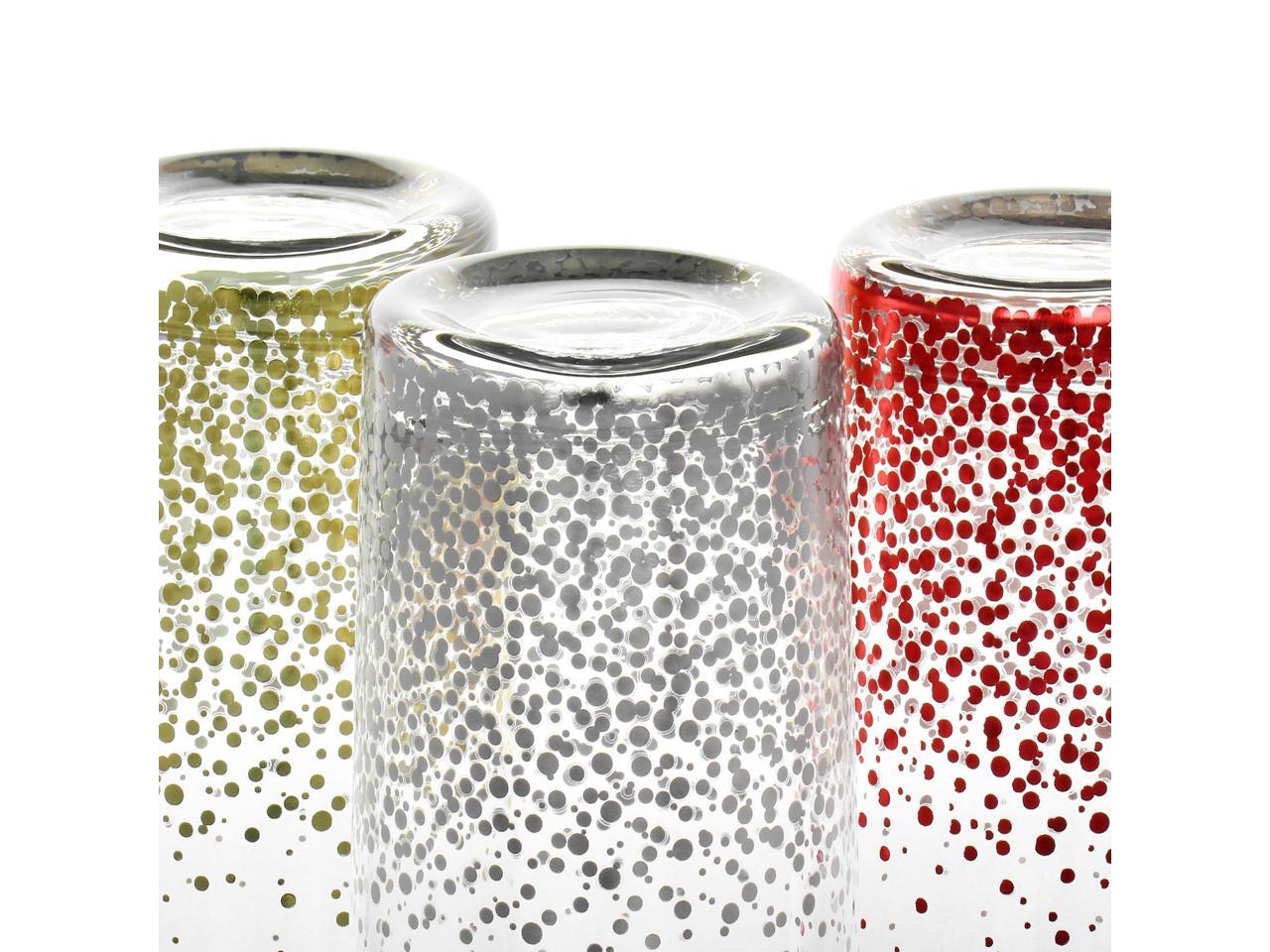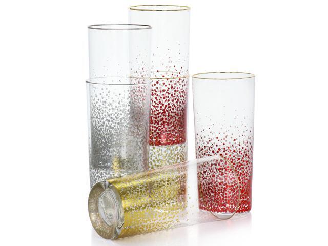 - Set includes: 2 red tumblers, 2 gold tumblers, and 2 silver tumblers