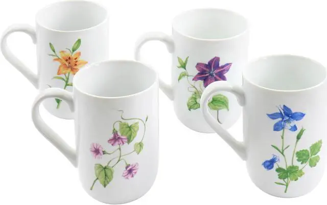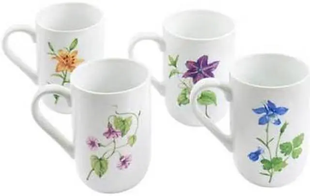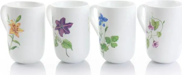 MS 4pc Mug Set - 4 x 14.5 oz Mugs - Add a pop of color to your coffee or tea with the Martha Stewart Skylands Botanic 4-piece Mug set. Crafted from durable fine ceramic, each cup features a different flower so you can enjoy vibrant style all year long. Dishwasher and microwave safe for fuss-free everyday use, this dish set delivers classic style and modern performance. Mix and match with other dinnerware and serveware to create a gorgeously coordinated tablescape for any occasion. Dishwasher and microwave safe. Made from durable fine ceramicFeatures vibrant floral designsPerfect for everyday use Mix and match with other pieces in the Skylands Botanic collectionIncludes four 14.5 -ounce mugs.