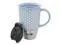 This Mr. Coffee Coupleton Dot 4 Piece 15 Ounce Stoneware Travel Mug Set is the perfect mug to enjoy your favorite hot or cold drinks. With a convenient travel lid, you can take this on the go or just help to avoid spills around the house. The base is stainless steel to help with insulation and has a padded bottom so it won't scratch surfaces. A dotted wax relief design on the light baby blue color makes this a lovely addition to your drinkware. Due to the stainless steel base, this mug is hand wash only and not microwave safe.